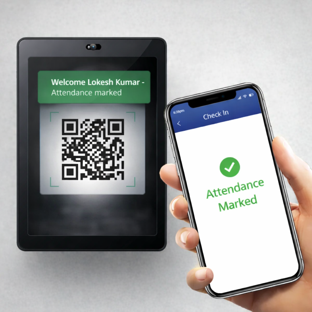 You just need to have a tablet or phone on your door to allow user to mark attendance. Streamline your front desk operations with our lightning-fast QR code scanning.